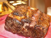 Tonight I cooked a Ribeye Roast in my Sous Vide Supreme. First I seasoned it with my own rub made of spanish smoked paprika, granulated garlic, salt, and pepper, vacuum sealed it, and I let it soak for 24 hours at 130 F and pulled it out tonight. This cut of meat does not need to cook this long, but I leave it in longer more out of convenience. The longer soak does not in any way negatively affect the finished product.