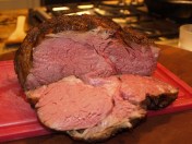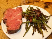 Lastly, here is a shot of the roast cut, and my dinner plate with a side of bacon green beans. Note how the meat is cooked perfectly medium rare though out, “edge to edge.” This is what Sous Vide cooking is all about!