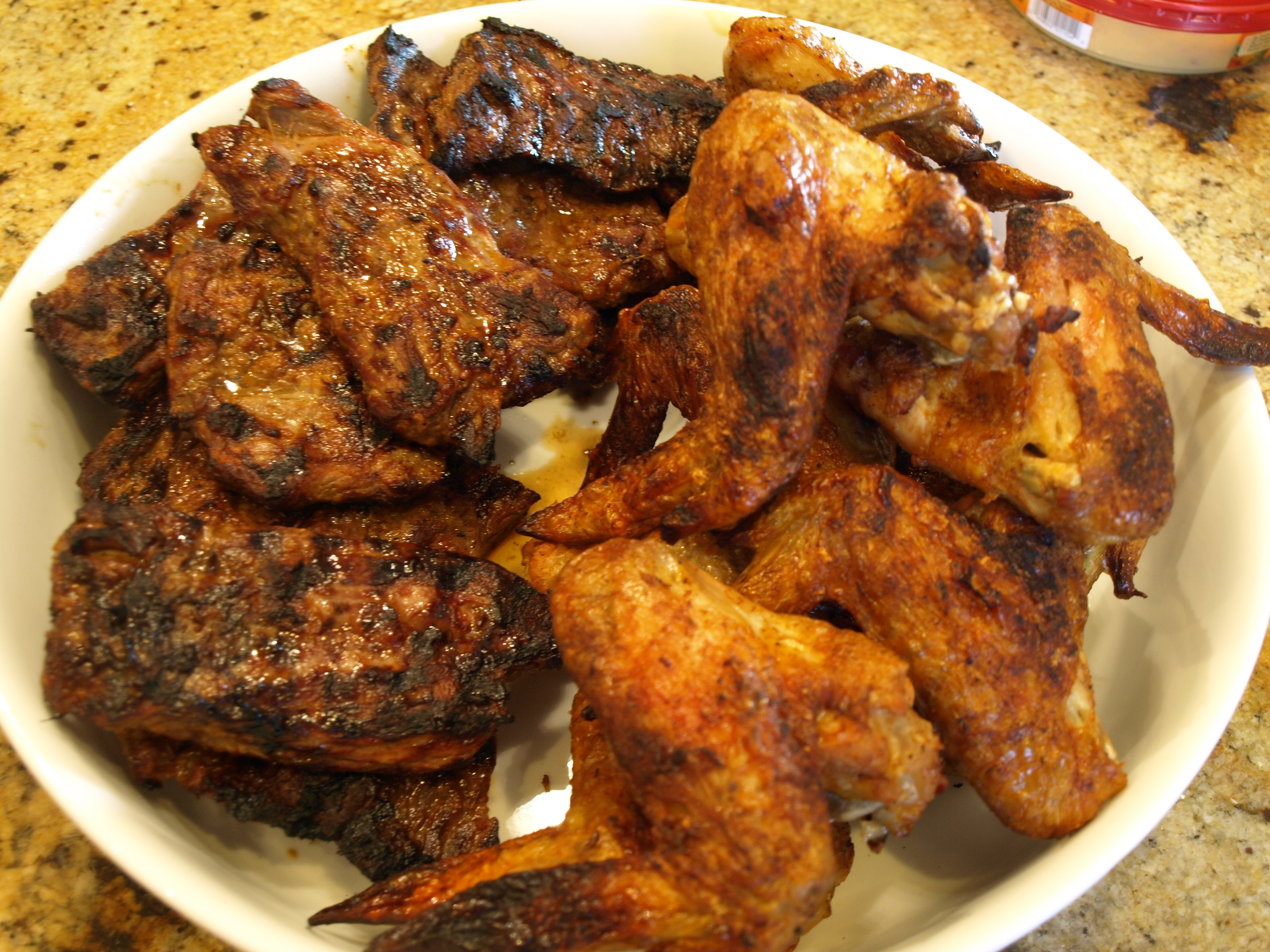 Fourth of July Dinner included some Spanish Pimenton marinated skirt steak, Cajun dusted oven roasted chicken wings