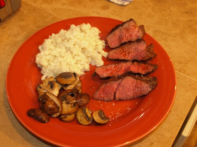 For my sides, I sauteed up some cubed King Trumpet Mushrooms in olive oil, and roasted some asparagus in the oven at 400 F for around 20 minutes. Just toss them in olive oil, salt, and pepper and pop them in. I usually add some kind of vinegarette to top my asparagus because Kourt just loves them that way, and tonights did NOT disappoint! Whole grain mustard, White Balsamic Vinegar, salt, pepper, and olive oil. All I can say is…Kourt and I were fighting to lick the left overs out of the bowl! Finally, I plated everything up. We have the adult plate, and the kid’s plate! All were happy…