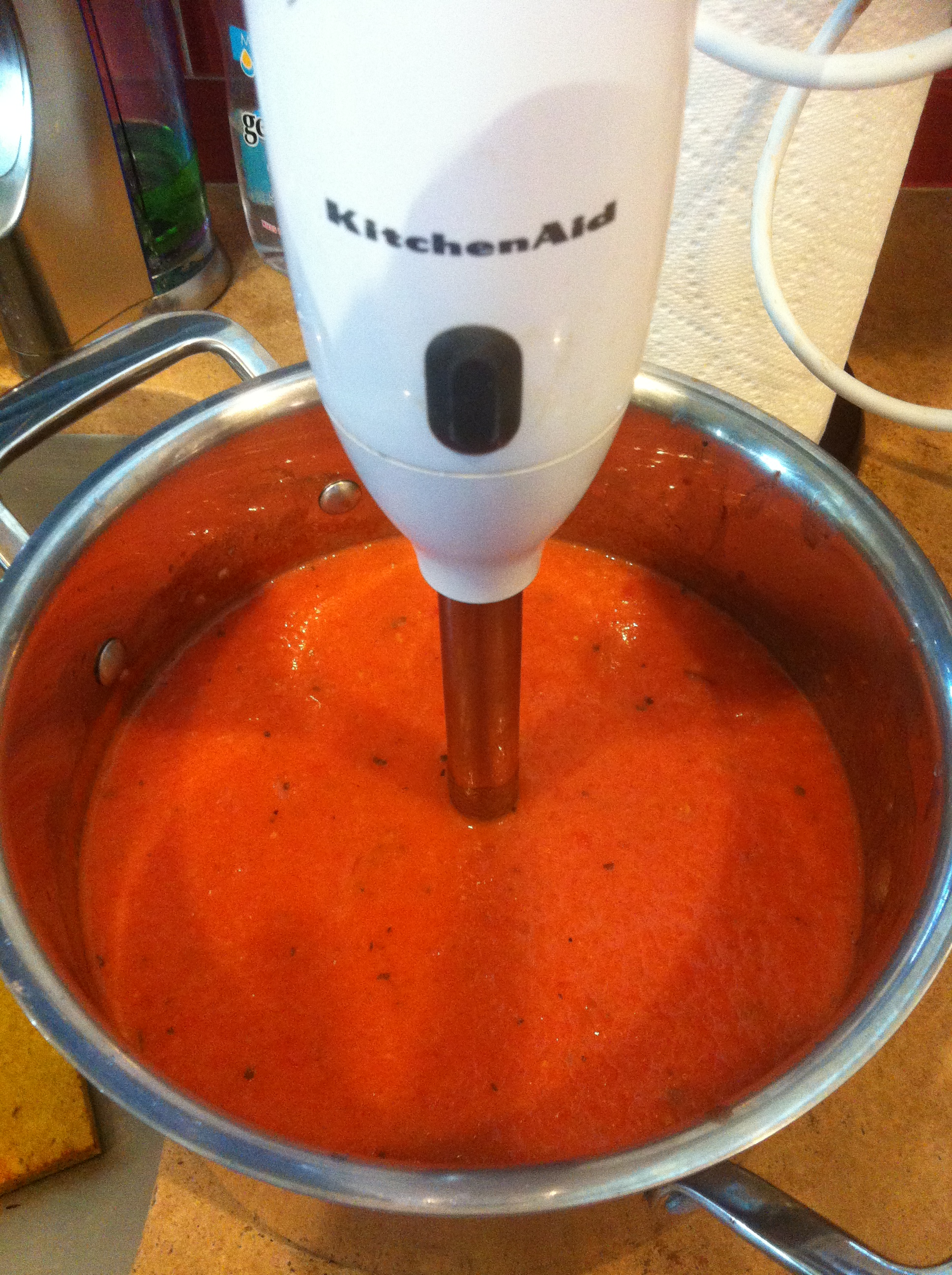 When we got back this afternoon, I took the hens out and put them on a rack to cool. With my immersion blender I made an amazing gravy out of the juices and veggies in the bottom of the slow cooker. Just had to add a touch of salt to finish it off.